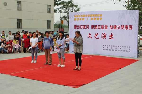 此次匯演,是推進(jìn)社會主義核心價(jià)值觀“六進(jìn)”活動的重要載體。從三月初,通過從河南街小區(qū)業(yè)主中,征集好家規(guī)好家訓(xùn)和編寫最美家庭故事的方式,最終甄選確定10戶業(yè)主,在匯演現(xiàn)場分享家法家規(guī),展示家庭“正能量”。在分享的間隙,由舞蹈、歌曲、戲曲等業(yè)主們喜聞樂見的文藝表演穿插其中,使小區(qū)業(yè)主在潛移默化中受到熏陶,增強(qiáng)認(rèn)可。